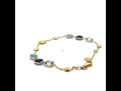 Гривна от 14 k жълто злато с aквамарин и син топаз