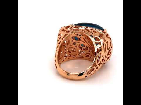 Пръстен от розово злато със син топаз